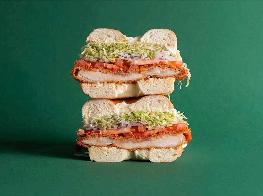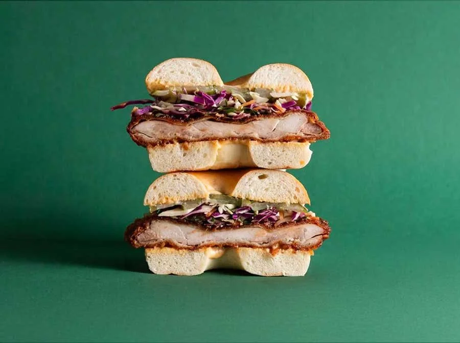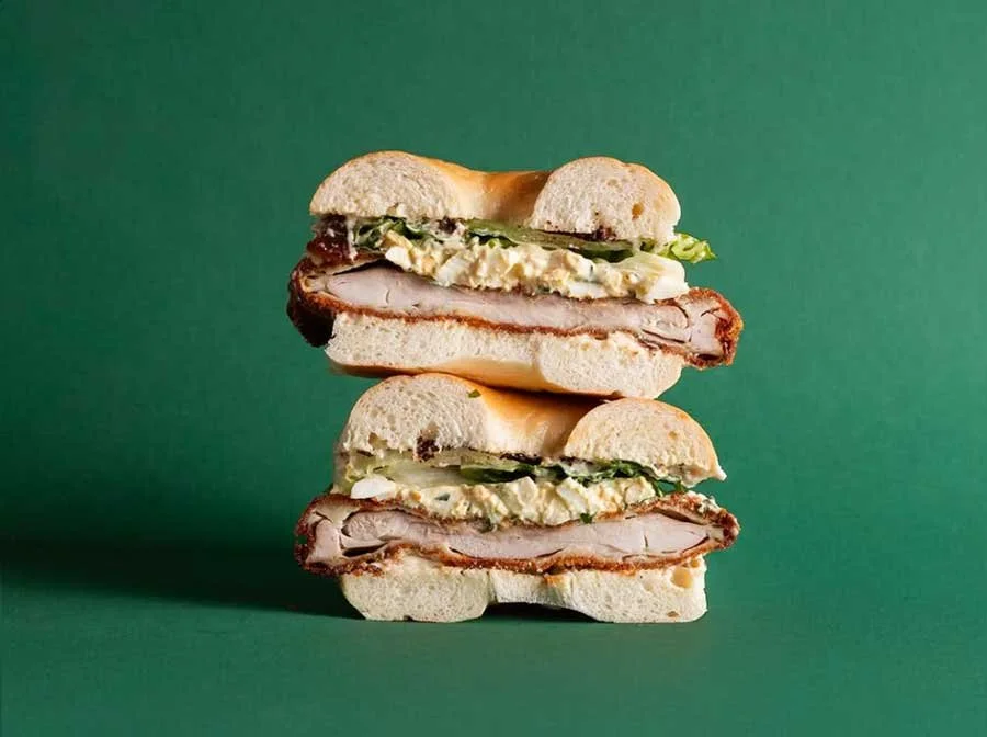 Schnitty, Caesar dressing, herb egg mayo, cos, turkey bacon bits