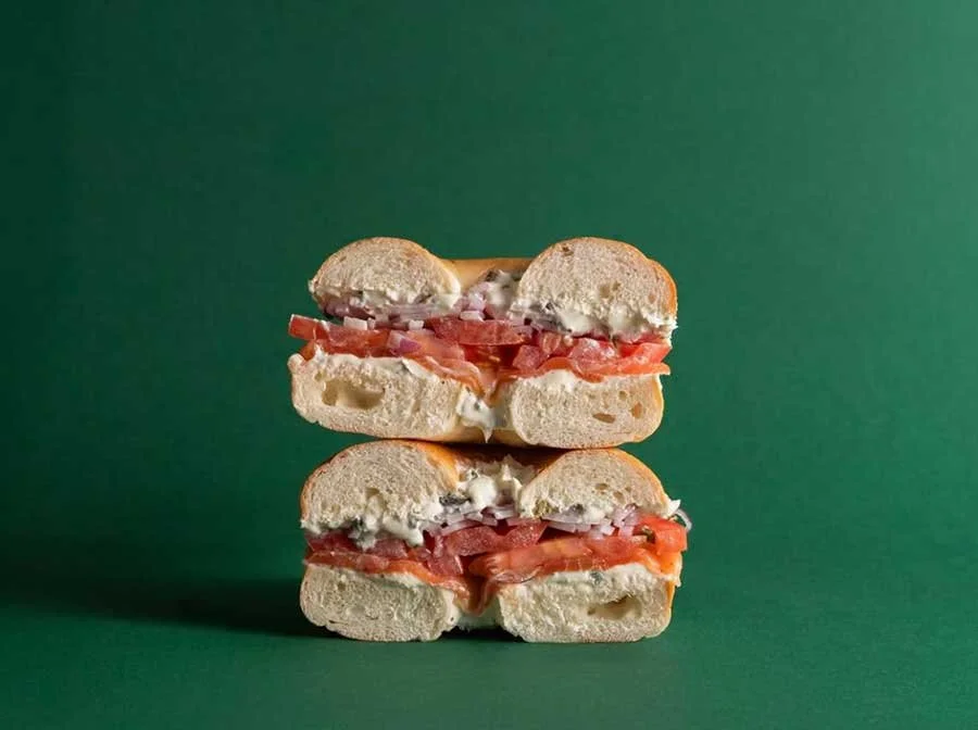 Ōra King salmon, herb schmear, tomato, red onion, baby capers